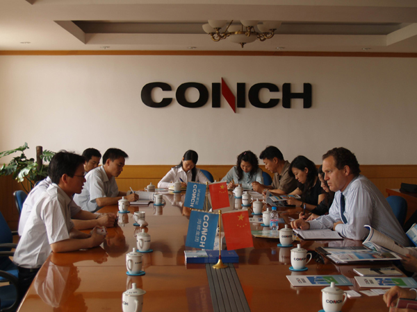After visiting the third factory of the company, they have an informal discussion with the company leader, listening to the detailed introduction of production, sales and the history. Some members of the delegation have strong interest to Conch products.