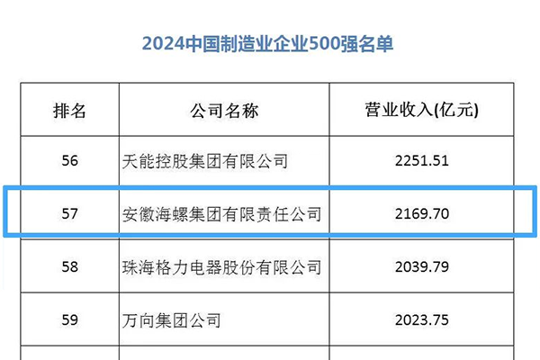 At the 2024 World Manufacturing Convention, the list of the China’s Top 500 Manufacturing Enterprises in 2024 was released where Conch Group ranked 57th. Conch Group also ranked 135th on the 2024 Fortune China 500 list and 130th on the 2024 China’s Top 500 Enterprises list released by the China Enterprise Confederation.