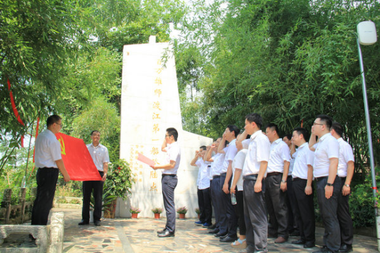 在“百万雄师渡江第一船登陆点”纪念碑前,全体党员面对党旗,公司生产党支部书记徐刚同志带领大家进行了庄严的宣誓,“我志愿加入中国共产党,拥护党的纲领、遵守党的章程……”,铿锵有力的宣誓声充分表达了大家“不忘初心、牢记使命”的坚定理想信念。
