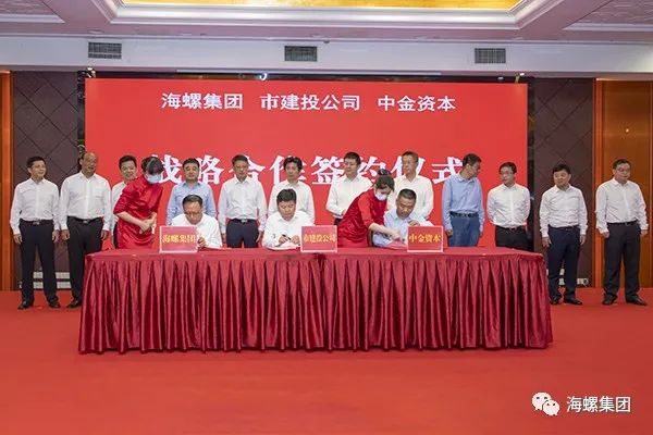2022年5月31日,海螺集团与芜湖市合作项目签约活动暨海螺中碳公司双碳互联平台系统正式上线运行启动仪式在海螺集团总部举行。芜湖市委书记单向前,市委副书记、市长宁波,海螺集团党委书记、董事长杨军,党委副书记、总经理任勇,芜湖市领导汤劲松,海螺集团领导王建超、万涌、吴斌、丁锋、方原等出席并见证签约。