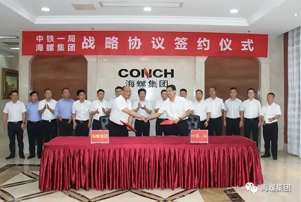 2022年7月28日,中铁一局集团领导一行到访海螺集团,双方签署了战略合作协议。中铁一局集团党委书记、董事长马海民,海螺集团党委书记、董事长杨军出席并见证签约。中铁一局集团副总经理尚武孝,海螺集团总经济师丁锋代表双方签约。