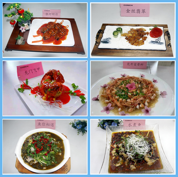 高端的食材往往只需要最朴素的烹饪方式,选手们在做好食材准备后,开始特色菜式烹饪。他们开动脑筋,发散思维,自由选择食材,创意搭配,比赛过程中每位选手都全力以赴,所做菜品各有千秋,不仅对菜肴的味道有良好的掌握,对菜肴的样式更有独特的见解,经过选手们的精心烹制,“张灯结彩”“龙门飞甲”、“花开富贵虾”、“金丝翡翠”、“鱼你相遇”、“香菇蒜蓉粉丝虾”、“酸菜鱼”、“水煮鱼”等一道道色泽鲜亮、造型精美、创意新颖,色、香、味俱佳的菜品被端上评分台。整个现场气氛浓烈,已然成为一场“美食嘉年华”。
