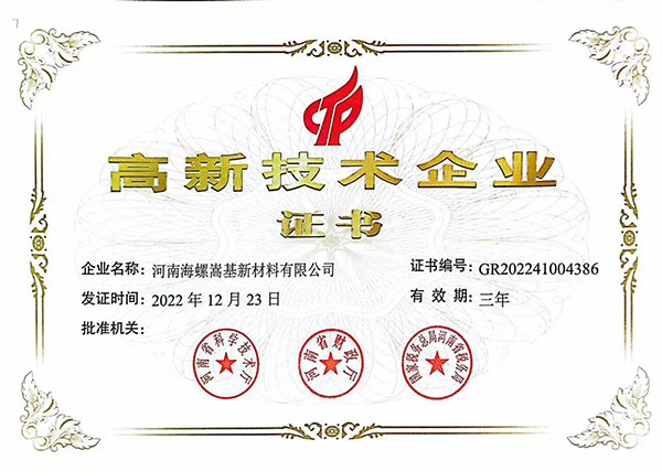 近日,海螺新材旗下河南海螺嵩基新材料有限公司顺利通过河南省2022年高新技术企业认定审查,荣获了由河南省科学技术厅、河南省财政厅、国家税务总局河南省税务局联合颁发的高新技术企业认证证书。