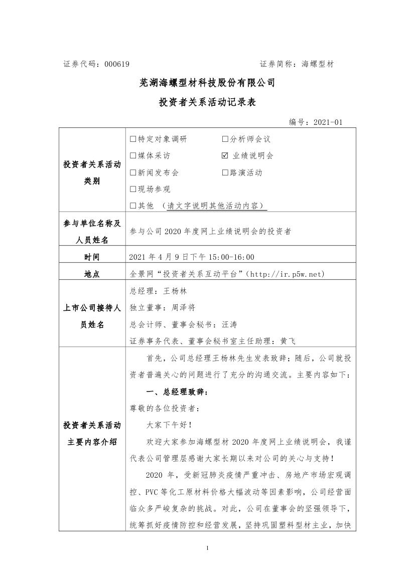 2021年4月9日投资者关系活动记录表