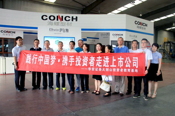 6月22日,深交所牵头举办的“践行中国梦·走进上市公司”投资者开放日活动走进海螺型材,在海螺酒店1115会议室,组织召开了现场互动交流会议,深交所投资者教育中心、安徽省证监局、华安证券、国元证券、投资者代表共40余人参加了此次活动,公司总经理王杨林、副总经理虞节玉、总会计师汪涛等参加会议,并与投资者互动交流。