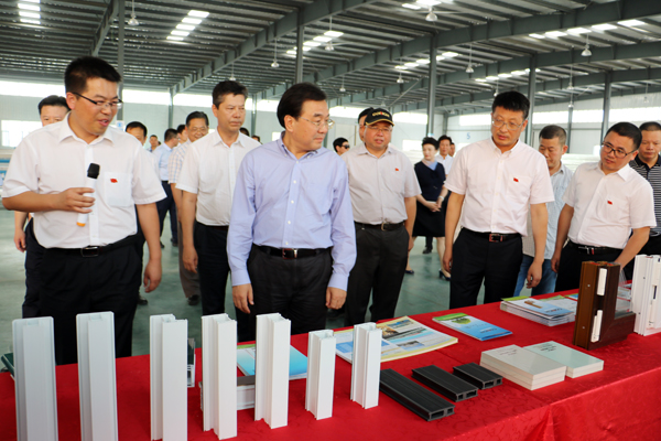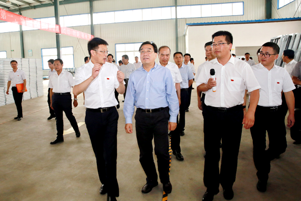 投产庆典仪式前,在集团公司总经理任勇的陪同下,参加投产庆典仪式的各位领导、嘉宾参观了和田海螺型材厂区及生产线。