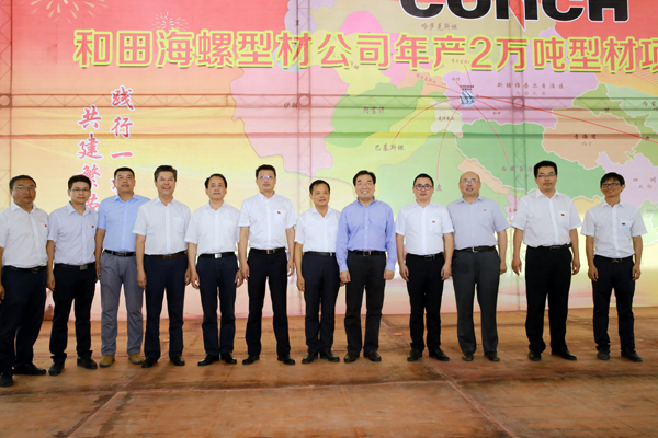 7月11日下午,安徽省产业援疆重点项目—和田海螺年产2万吨型材生产线投产庆典仪式在和田型材公司厂区隆重举行。安徽省委副书记信长星,省委副秘书长徐飞,省委组织部副部长刘志宏,省发改委副主任曹发义,新疆维吾尔自治区交通运输厅党组副书记、厅长祖丽菲亚,和田地委副书记袁宝新,和田地委副书记、安徽援疆指挥部指挥长张明,和田地委委员、皮山县委书记艾合买提·买买提;海螺集团公司总经理任勇,海螺型材股份公司总经理王杨林等领导以及和田地区和皮山县有关部门负责人近200人参加了投产庆典仪式。