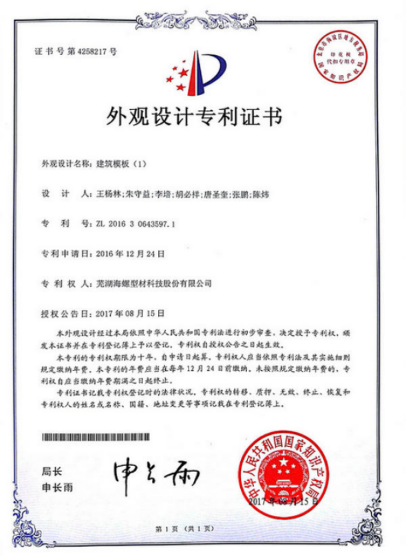2016年,海螺型材果断决策,积极响应国家五大发展理念,决定投资建设芜湖型材公司年产5000吨建筑模板生产线。公司发挥多年来在塑料加工领域积累的技术优势,加强PVC新型化学建材产品的应用研究,陆续开发出聚酯合金、PP中空、PVC共挤三大系列建筑模板产品,满足不同工程应用需求。