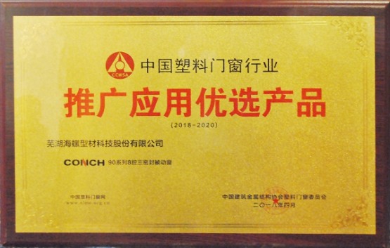 5.海螺型材应邀参加2018年第23届全国塑料门窗行业年会。4月19-20日,第23届全国塑料门窗行业年会在上海青松城大酒店隆重举行,海螺型材90系列产品荣膺“2018年度中国塑料门窗行业推广应用优选产品”标牌。