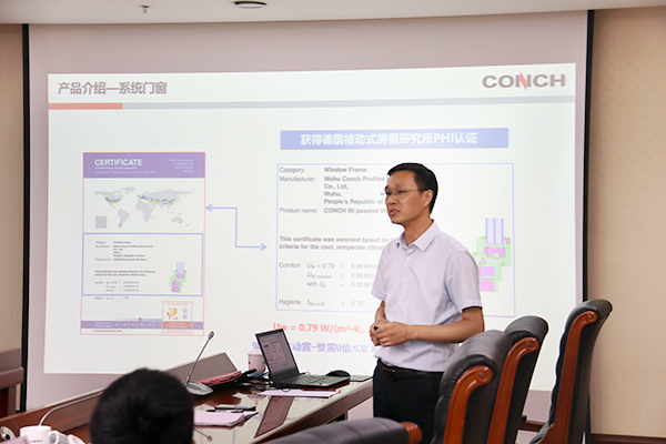 会上,塑料与门窗研究所副总工程师李培向来宾重点介绍了公司新产品情况。