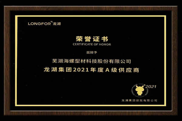 海螺型材作为龙湖集团塑钢品类战略集采合作伙伴,荣膺2021年度A级供应商称号。