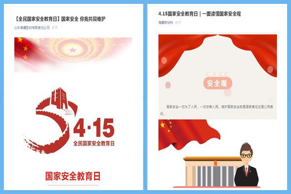 今年4月15日是第六个全民国家安全教育日,深入学习贯彻总体国家安全观、增强忧患意识,是每一位公民的责任。为切实增强广大员工的国家安全意识,在全公司范围内营造良好的宣传和学习氛围,海螺型材各单位紧扣“践行总体国家安全观,统筹发展和安全,统筹传统安全和非传统安全,喜迎建党100周年营造良好氛围”主题,深入开展了形式多样的国家安全普法宣传活动。