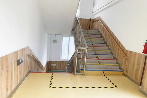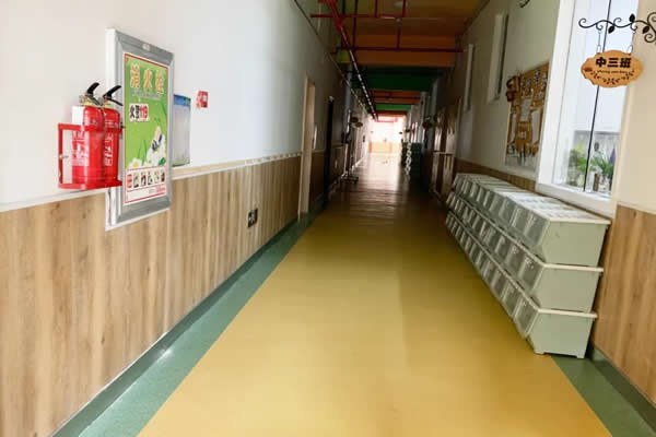产品表面耐磨层有超强的防滑性能,摩擦系数大于0.5,达到欧美商用地板防滑标准。与普通的地面材料相比,在粘水的情况下脚感更涩,更不容易滑倒,适合在公共区域给孩子们使用。