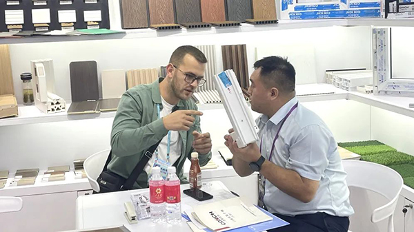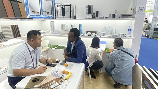 通过本次展会,海螺新材充分借助安徽国贸集团的外贸业务优势,在巩固好地板产品外贸业务的基础上,加大了其它产品的外贸市场拓展。展位现场吸引了来自各个国家和地区的众多客户,其中不少客户都是来自共建“一带一路”国家。海螺新材全屋定制系列产品不仅满足了国内市场的需求,同时也在积极拓展国际市场。无论是在国内还是国外,海螺新材将始终秉承“至高品质,至诚服务”的经营宗旨,致力于为客户提供最优质的产品和服务。