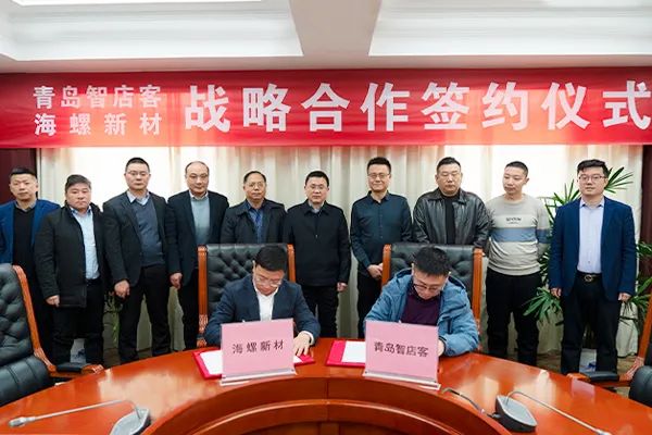 12月21日上午,海螺(安徽)节能环保新材料股份有限公司与青岛智店客智能科技有限公司战略合作协议在芜湖签署。海螺新材股份公司总经理王杨林和青岛智店客总经理孙岩出席座谈并见证签约。青岛智店客总经理孙岩和海螺新材副总经理朱守益代表双方签约,参加签约仪式的人员还有青岛智店客营销总监王玉军、招商总监顾永军、技术总监刘星,海螺新材料公司总经理顾成兵、海螺新材总工程师唐圣奎等参加活动。
