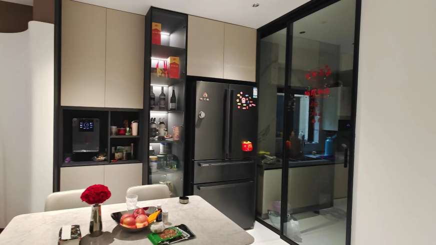 餐边柜采用虚实柜门混搭与储物功能相结合,让您的三餐四季皆可收纳其中。
