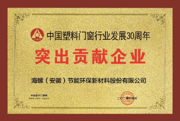 为表彰对行业三十年以来发展做出杰出贡献的企业,经主管部门和评审专家的严格甄选及综合测评,海螺新材荣获中国塑料门窗行业发展30周年“突出贡献企业奖”、“创新企业奖”,海螺新材70系列产品荣获中国塑料门窗行业“推广应用优选产品”等多项大奖。