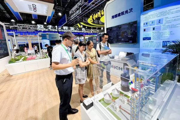 海螺集团展馆围绕产业转型升级主题,聚集海螺新能源、新材料、数字经济产业链,通过沙盘展示、实物模型、视频演播、互动体验等多种形式,集中展示海螺实施创新驱动,推动产业高端化、智能化、绿色化发展的丰硕成果。海螺智能质量控制系统、供销物流管控系统、袋装水泥机器人自动装车系统、安徽省外贸综合服务平台、安天智采招标采购电子交易平台、全过程数字管理平台,以及海螺新材全屋定制、海螺建筑光伏、海螺全钒液流储能、海螺科创外加剂与工业制剂等悉数参展。