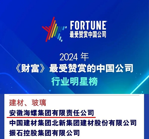 11月5日2024年《财富》“最受赞赏的中国公司”榜单发布海螺集团入选建材、玻璃榜