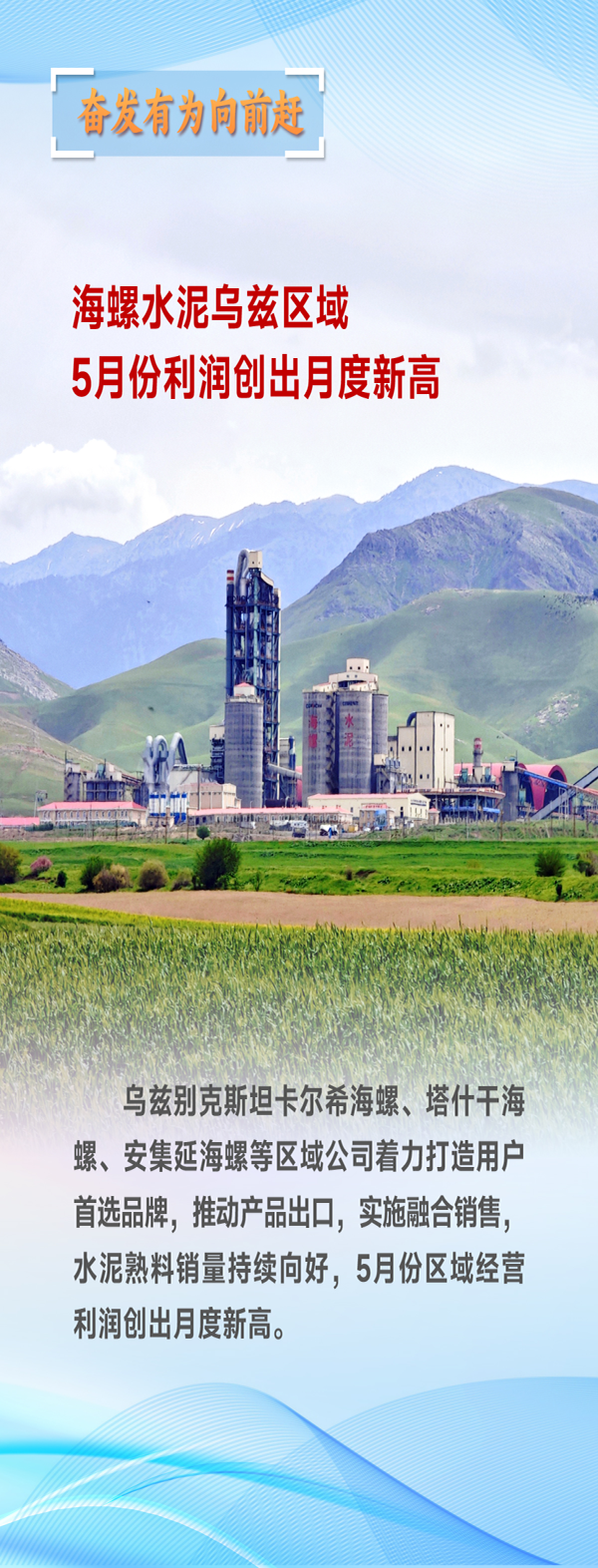时光向前,海螺向上。今年以来,海螺各单位把深入贯彻中央八项规定精神学习教育与企业经营发展紧密结合起来,锚定全年目标任务,以拼的精神、闯的劲头、实的作风攻坚克难,全力拓市场、抓项目、推创新、稳增长,奋发有为向前赶,以作风建设新成效推动海螺高质量发展,为完成全年目标任务奠定了坚实基础。