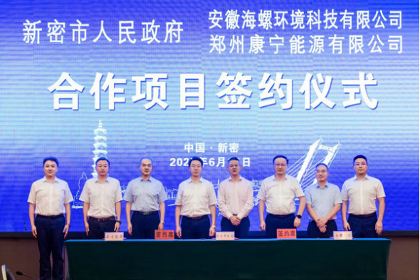 携手共进,扬帆远航,海螺新材产业布局再传捷报。2025年6月17日,海螺新材旗下海螺环境与康宁能源SCR脱硝催化剂项目股权转让协议签约仪式在河南省新密市举行。新密市市委书记程洋、市长杜鹏懿等班子成员,海螺新材党委书记、董事长李晓波,康宁能源董事长张福顺出席签约仪式。