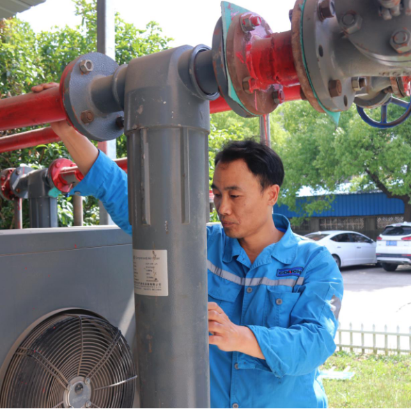 天河环境公司生产分厂王永辉在进行催化剂干燥后序作业
