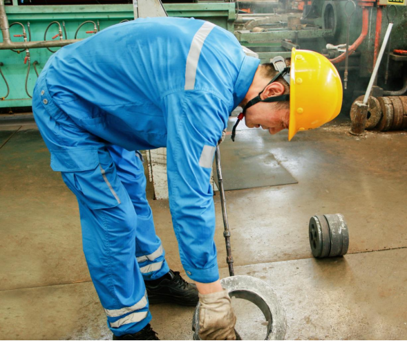 海螺嵩基公司挤压机手李俊豪正在开展挤压模具套膜上机作业