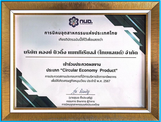 泰国工业部颁发的“循环经济产品”奖评选标准严苛,涵盖产品全生命周期的资源利用效率、废弃物减排能力、可回收性设计及生态友好性等多个维度,评审团由来自政府部门、科研机构、行业协会的权威专家组成,旨在表彰推动产业绿色转型、践行循环经济理念的标杆产品与企业。