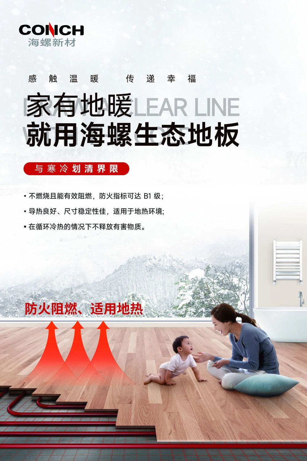 海螺生态地板绿色环保零甲醛防潮耐磨寿命长防火指标达B1级适用于地热等各种环境