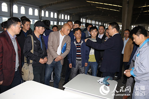座谈前,考察团一行参观了芜湖型材三分厂、建筑模板生产线、门窗公司、塑料与门窗研究所及公司展厅。