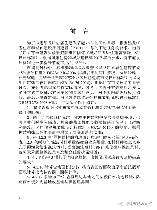 北方建筑节能标准发展的速度是比较快的,像北京、天津、河北、山东等省市都出台了75%的节能设计标准,这些地区多数处于寒冷地区。更往北边的严寒地区,例如黑龙江、吉林、辽宁等反而相对落后了些。不过,一些省市也在节能领域积极追赶,这不,黑龙江省即将于近日出台65%+的居住建筑节能设计标准,可以说距离75%标准又更近一步了,下面我们来简单的了解一下这份标准公示稿的内容。