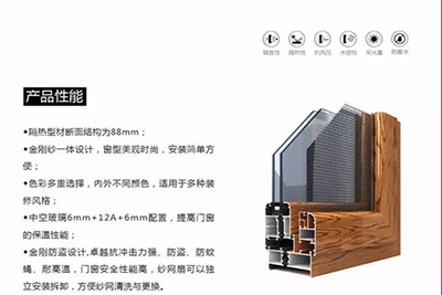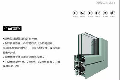 多腔体的PA66隔热条与铝合金型材复合组成的门窗框架,等压密封设计,有效阻止室内外热量的传递,保证室内的温度,有效的节能保温。